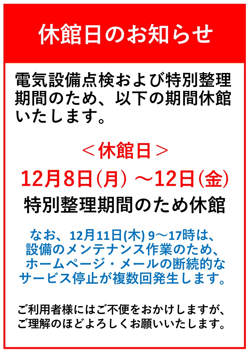 休館日のお知らせ