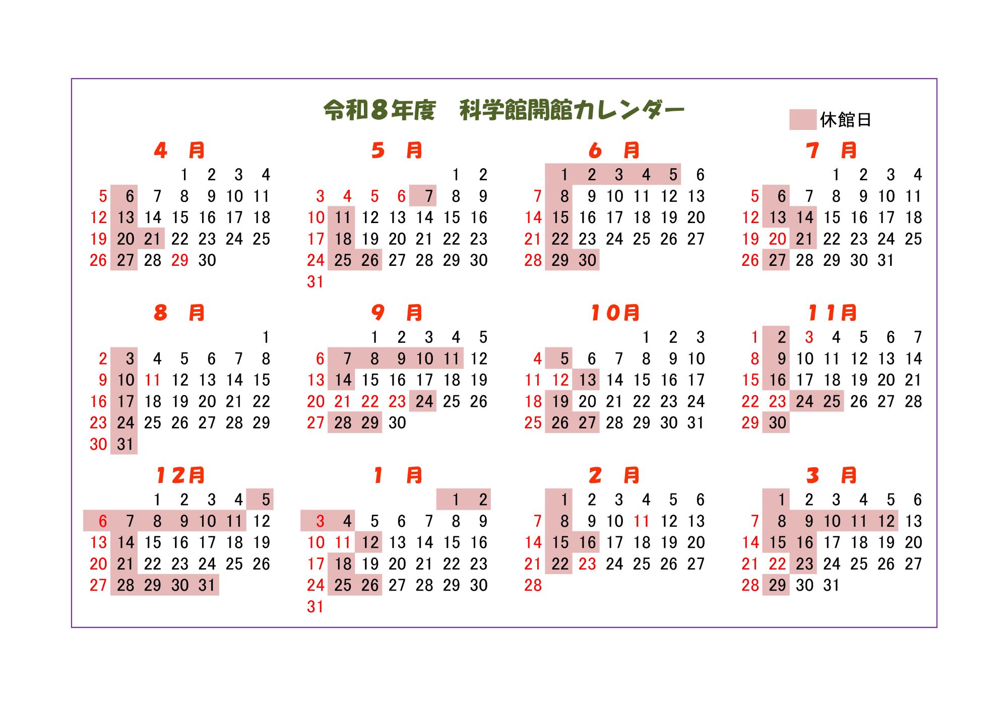 年間カレンダー