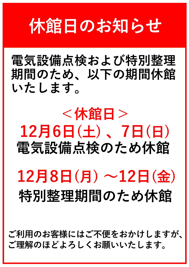 休館日のお知らせ