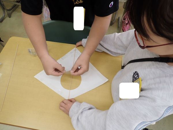 慈林小学校の1年生とたこづくりを行いました。友だちと協力して工作を行う姿が見られました。次の日に、たこを揚げるようなので、上手に揚げられるといいですね。